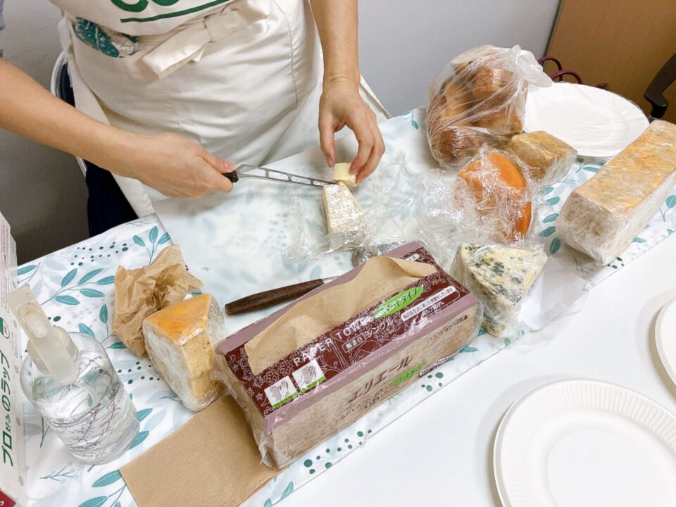 5種類のチーズを目の前でカットしてもらいました。Yさんが説明しながらカットしてくれる様子はすごく見応えがあって、チーズ好きのみなさんも喜んでくれました。
