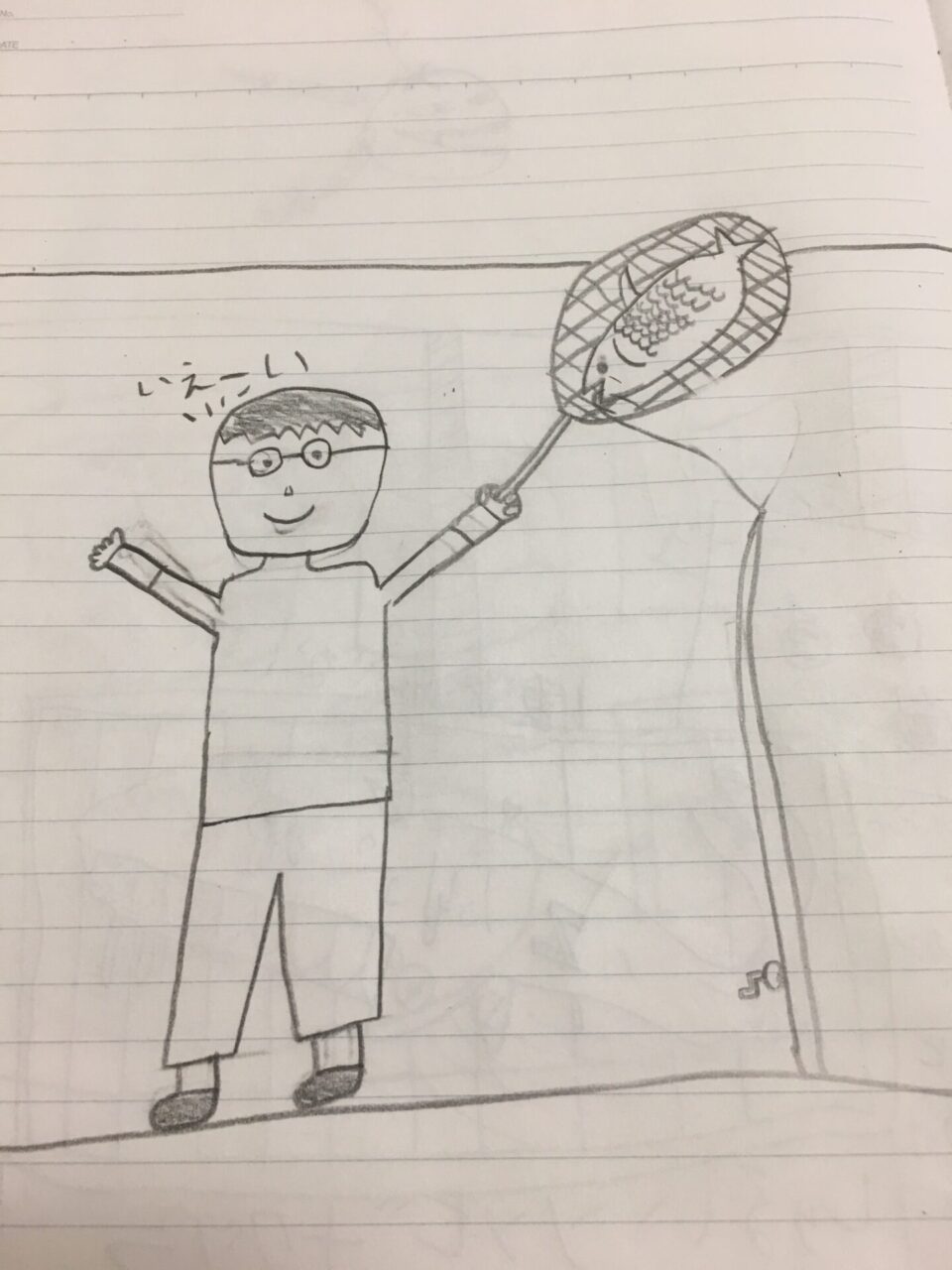 ちょっと前に、なんか書いて欲しいものない?と長男に聞かれたので、「おとうが土曜日に釣る予定の90cmのブリ」と答えたら、この絵を描いてくれたんですが・・・