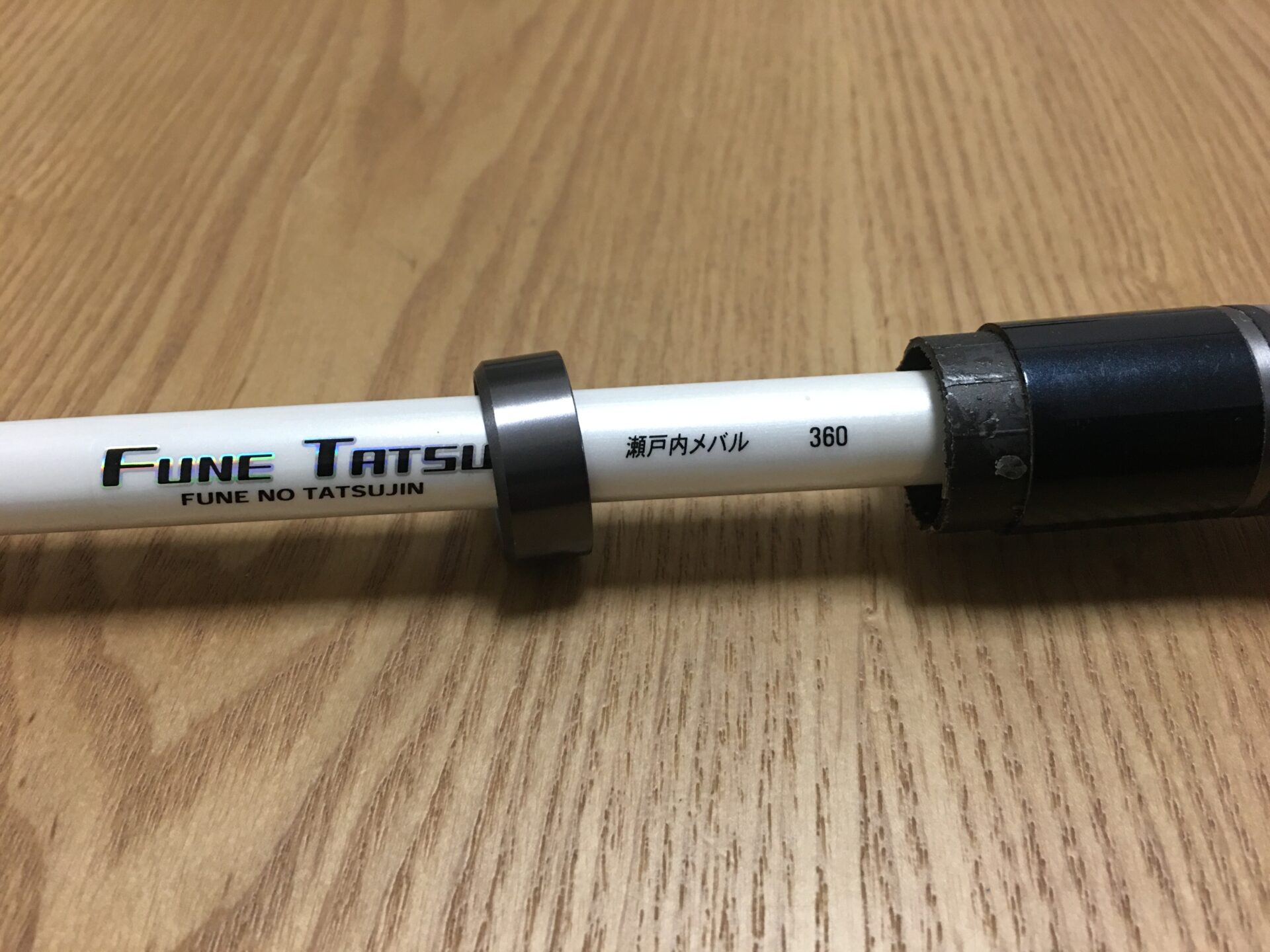 新調したノマセの竿を洗って乾かしているときに、2番目のガイドの内側が汚れていることに気づきました。なんの汚れだろう?と思いながら爪楊枝で取ろうとしますがまったく取れません。