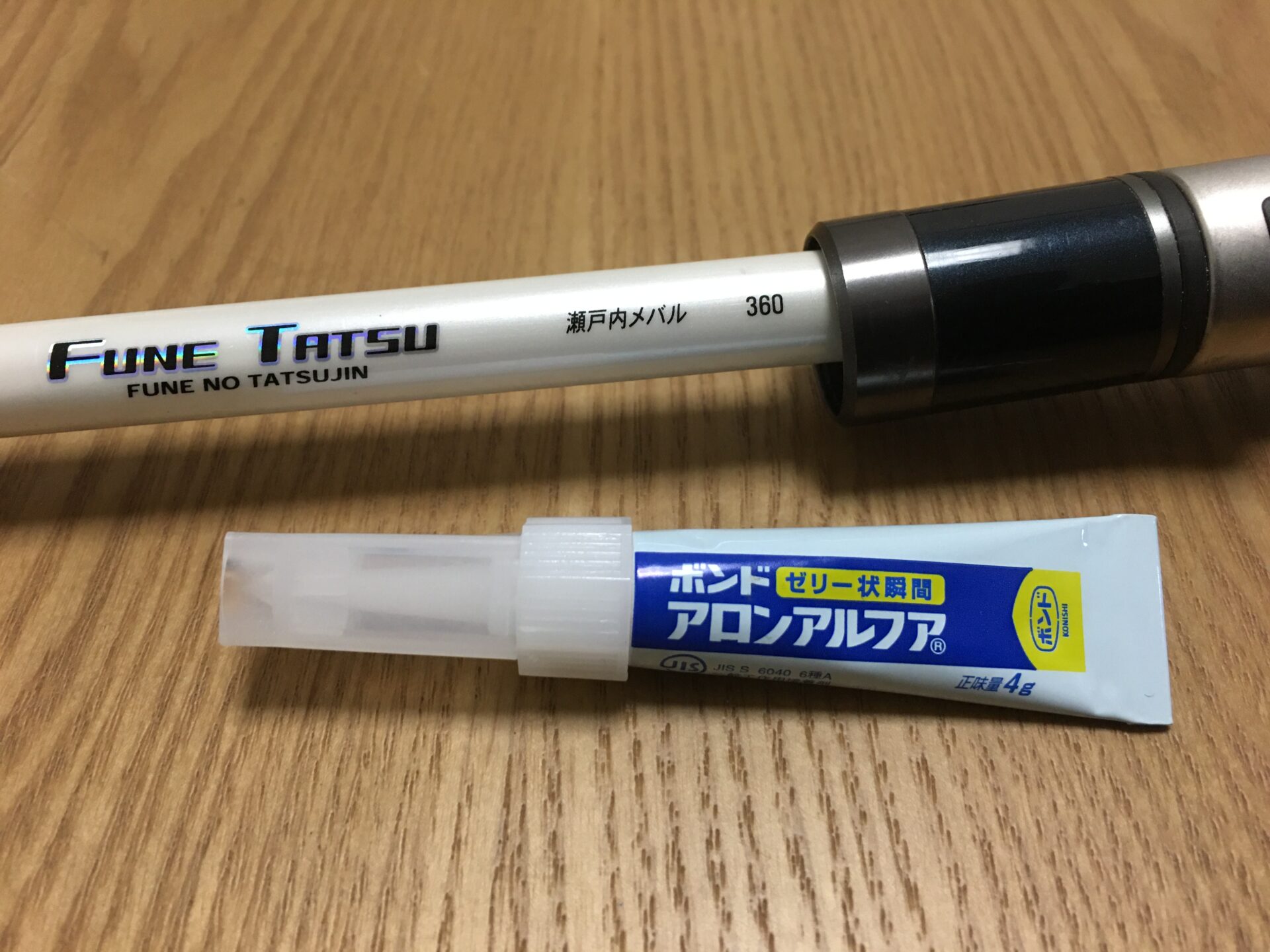 大勢に影響はなさそうですが、サビキ竿のリールを留める所の接着が取れてしまってました。無用なトラブルは可能な限りゼロにしておこうと、すぐに直しておいたので当日はノートラブルでした。