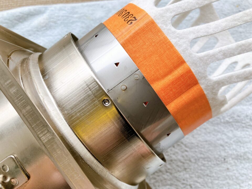 外枠を取り付けて、背面反射板、燃焼筒を元の位置に戻せばフジカハイペットの芯交換は終了です。お疲れ様でした。