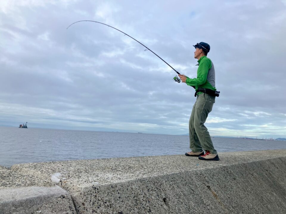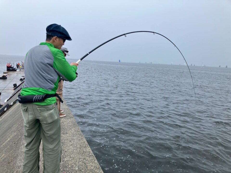 ドラグはすぐに鳴りやんだものの、チヌやアコウの可能性もあるので、外れてもいいから強めに合わせてみると、今回は上手く合わせられたみたい。よし!