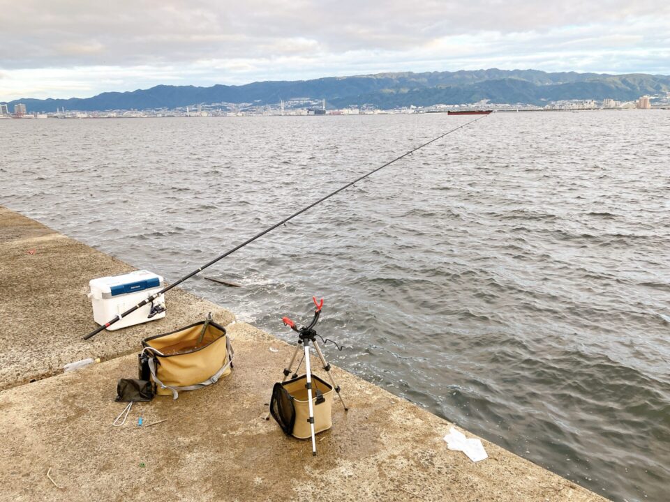 一文字に着いてサビキが釣れないと焦りますが、2匹釣れてとりあえず2本のノマセの竿を仕掛けることができたら、ひと息つけます。