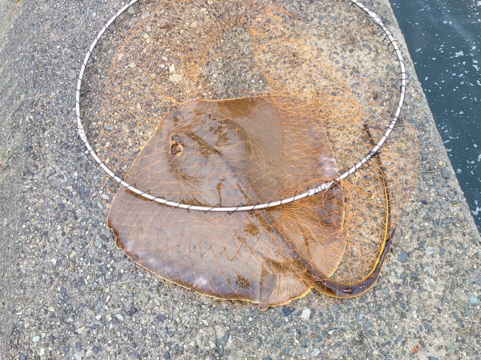ブリじゃなくても、もし、このサイズのカレイだったらヒーローになれたかもしれませんが、エイじゃなぁ。