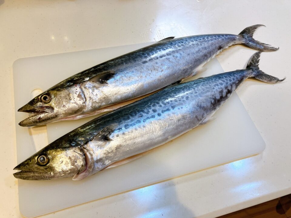 金曜日の夜に風呂に入ろうとしてたら、パパ友からサゴシのお裾分けが届きました。