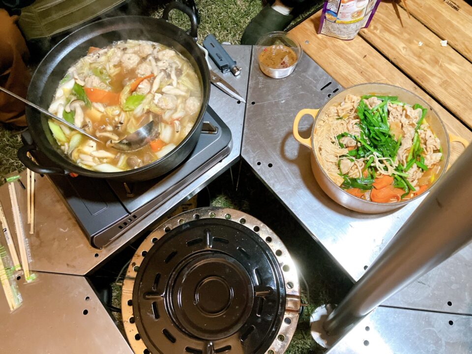 二日目の夜は雨のおかげで(?)、宴会幕の中でしっぽり鍋パーティー。