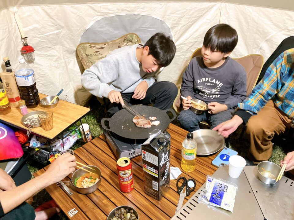 キャンプ場に向かう道中、「いつか自分のお金で肉を買って、一人で食べてみたい」と長男が言うので。