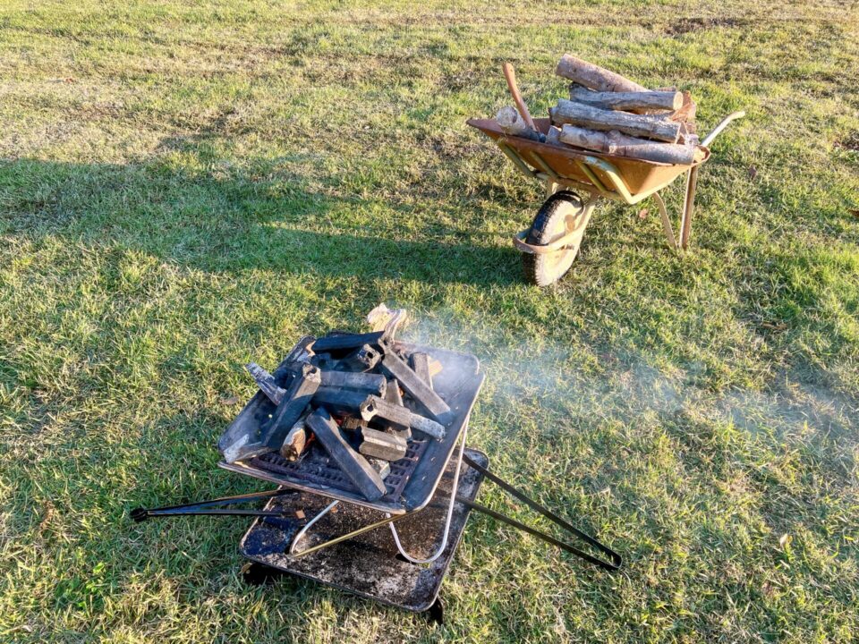 まずは、途中で寄った肉のマルセさんの肉を焼きます。炭火で焼くのは久しぶり。
