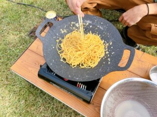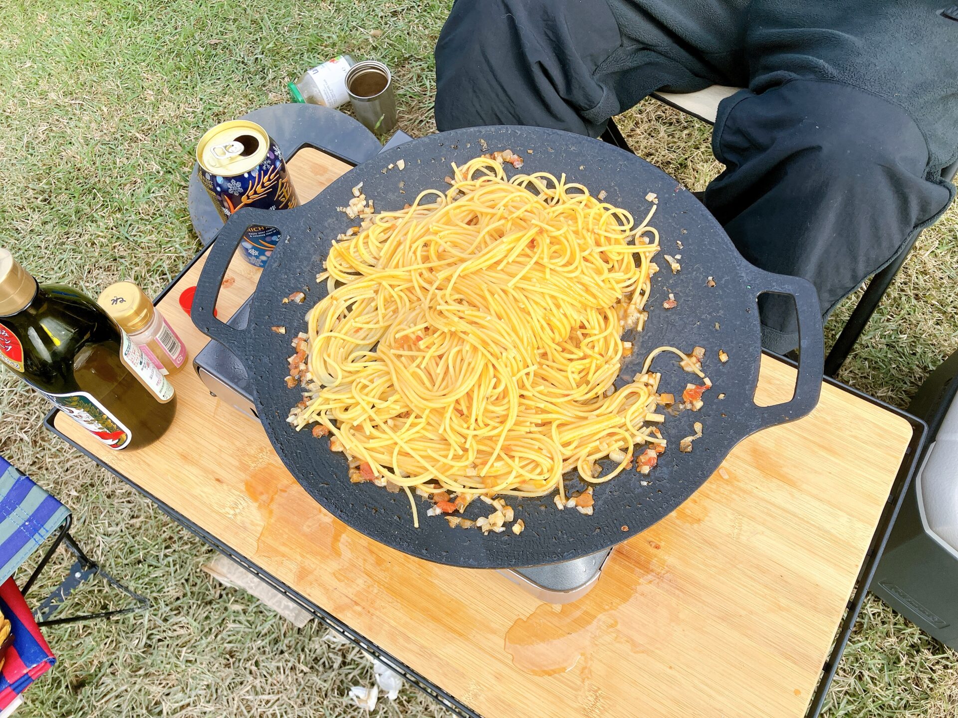 今回の食事は各自勝手に作って食べるというコンセプトなのですが、メンバーが作るパスタをいただいて、なんだかんだでパスタだけで4種類くらい食べました。